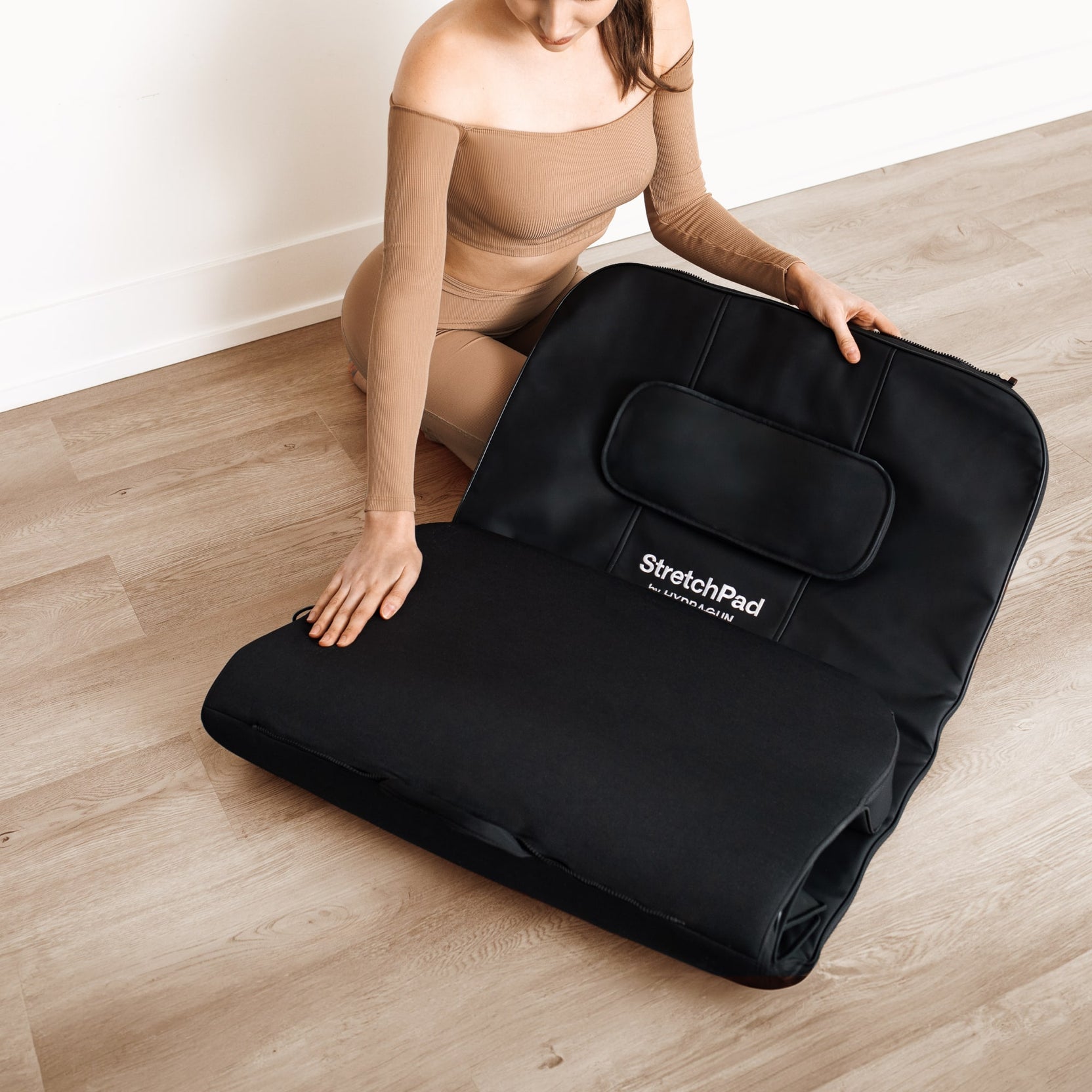 The StretchPad can be used on any flat surface—including the floor, sofa, mattress, or carpet.
